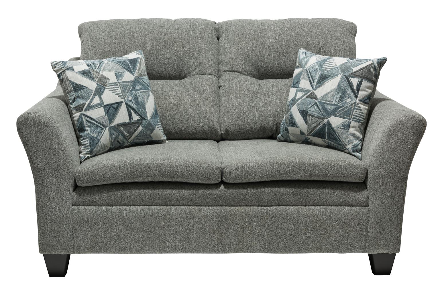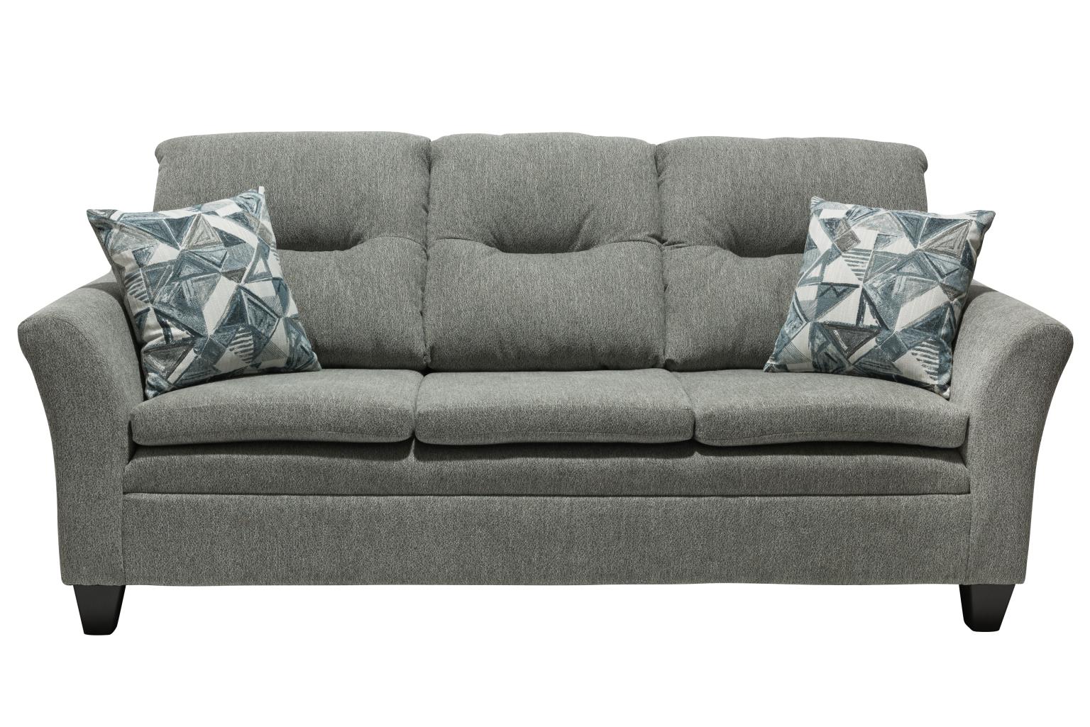 The Zuko Mist’s soft grey fabric and tailored tufted backs blend seamlessly into any décor. Gently flared arms, tapered legs, and geometric accent pillows add a touch of contemporary sophistication without sacrificing cozy appeal.