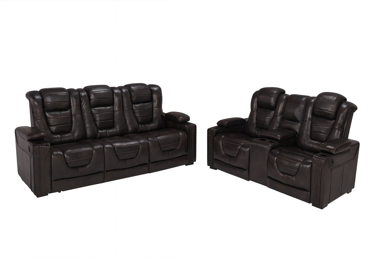 Experience the ultimate in relaxation and style with this luxurious dual power reclining sofa and loveseat set. Wrapped in supple, rich dark brown leather-like upholstery, this collection blends contemporary design with top-tier comfort and functionality—perfect for transforming your living room into a premium entertainment space.