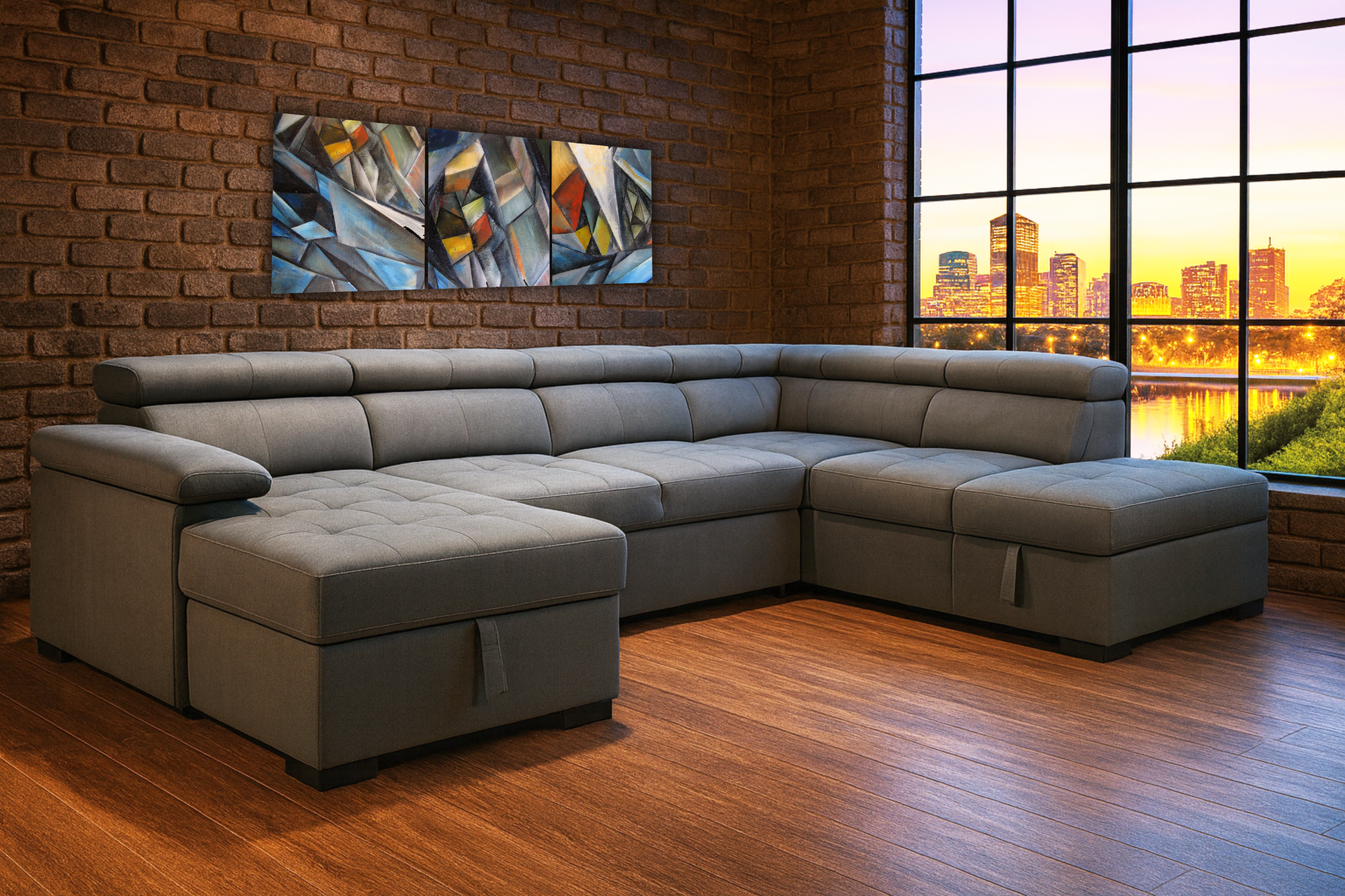 Transform your living space with the ultimate blend of comfort, functionality, and modern design. This U-shaped fabric sectional sofabed is more than just a statement piece — it’s a smart, space-saving solution crafted for contemporary living.